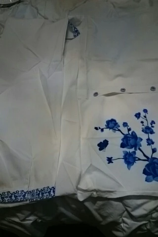 не очень белая.материал похож на тяжёлый шёлк,плотный.рисунок не вышивка.размер подошёл.