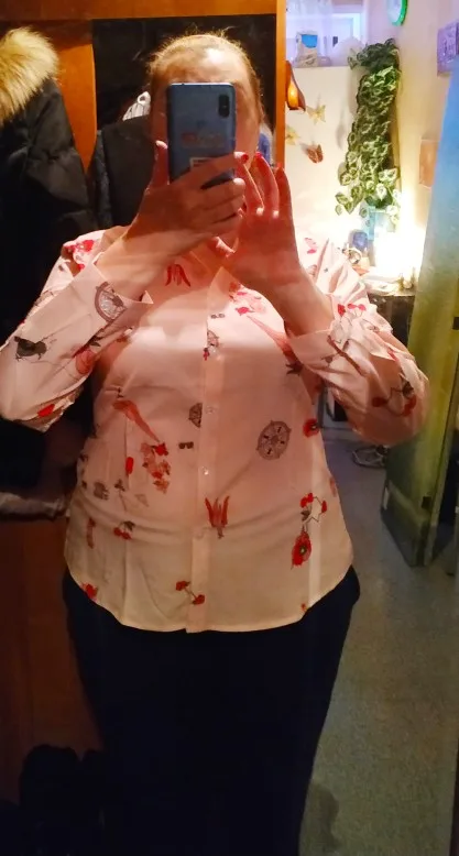 Блузка понравилась: красивый цвет, приятный шелковистый материал. На ОГ 103 4XL только-только (т.е. таблице не соответствует, маломерка). Длина блузки и рукавов хорошие, на мой рост 168 как раз. Доставка месяц и 3 недели.