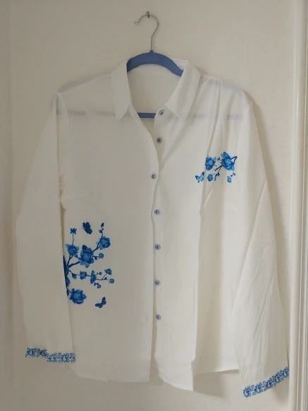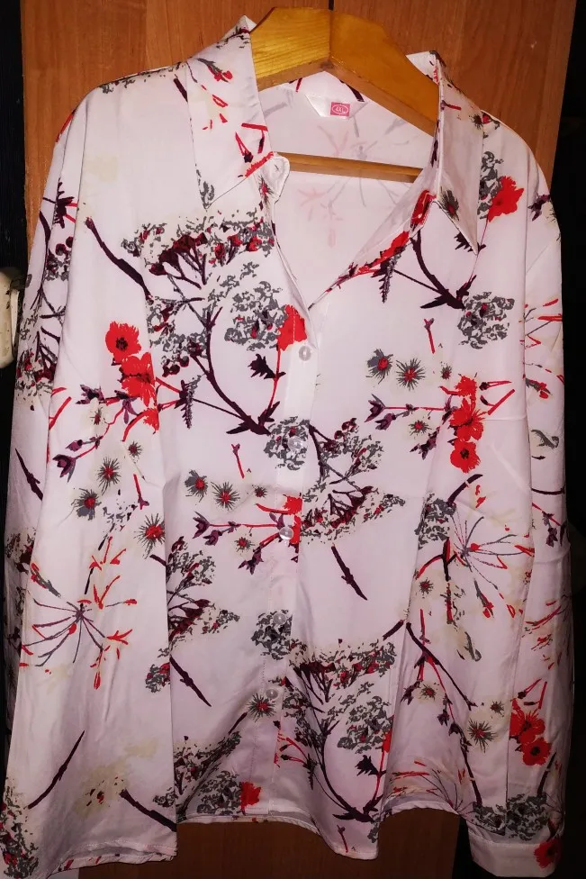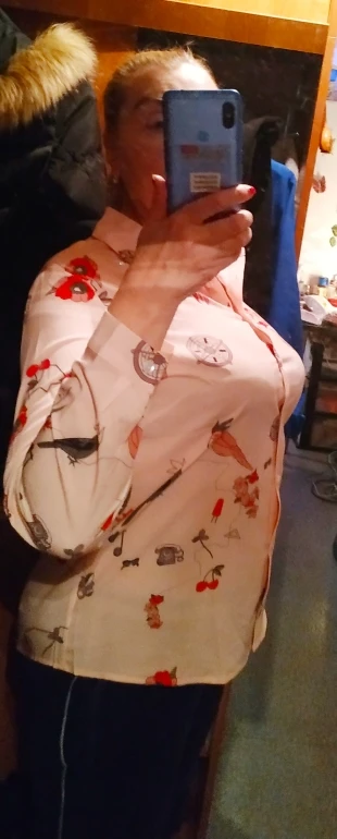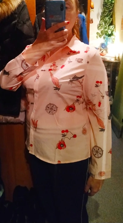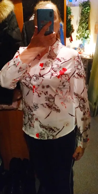Отличная блузка! Но размер L оказался слегка маловат на русский 46-й размер, а с пышной грудью точно будет в натяжку.