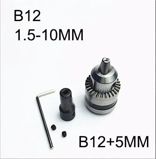 Mini патрон для электрической дрели 1,5-10 мм со стальным креплением вала 5 мм, внутреннее отверстие B12