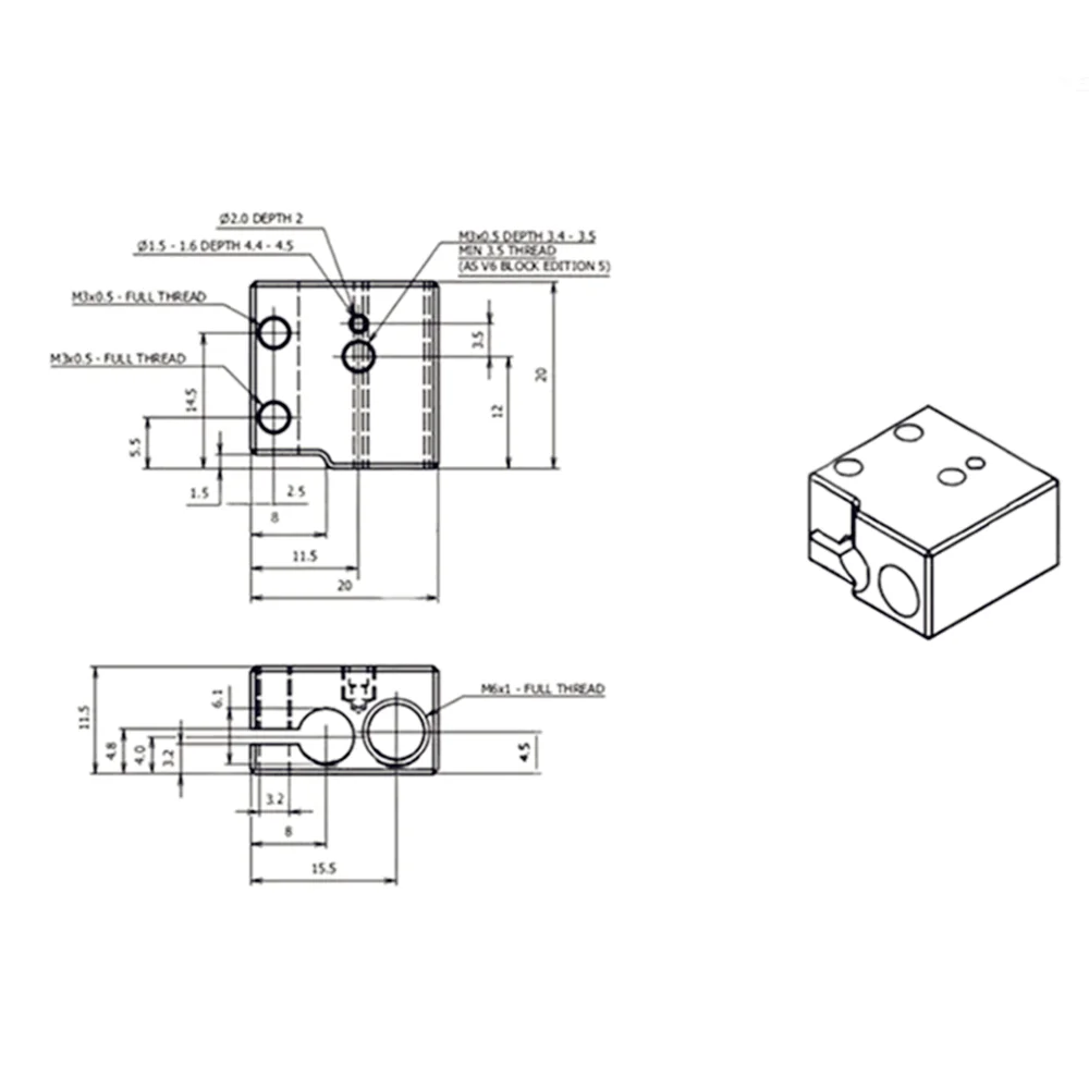 2 шт., алюминиевые нагревательные блоки для 3D-принтера, 20x20x11,5 мм
