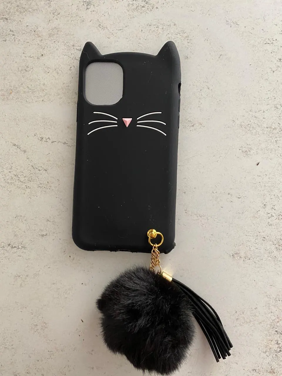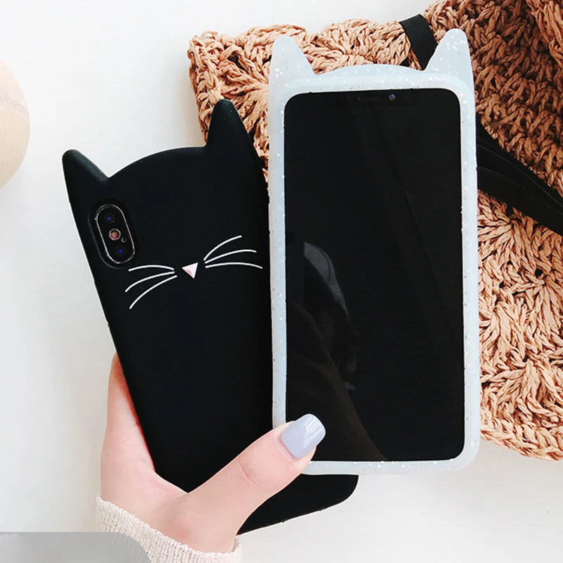 Милый 3D мультяшный силиконовый чехол для iPhone 13, 11, 12 Pro, 7, 8 Plus, 6s, 5 дюймов, блестящий чехол с рисунком бороды, кота и прекрасными ушками для
