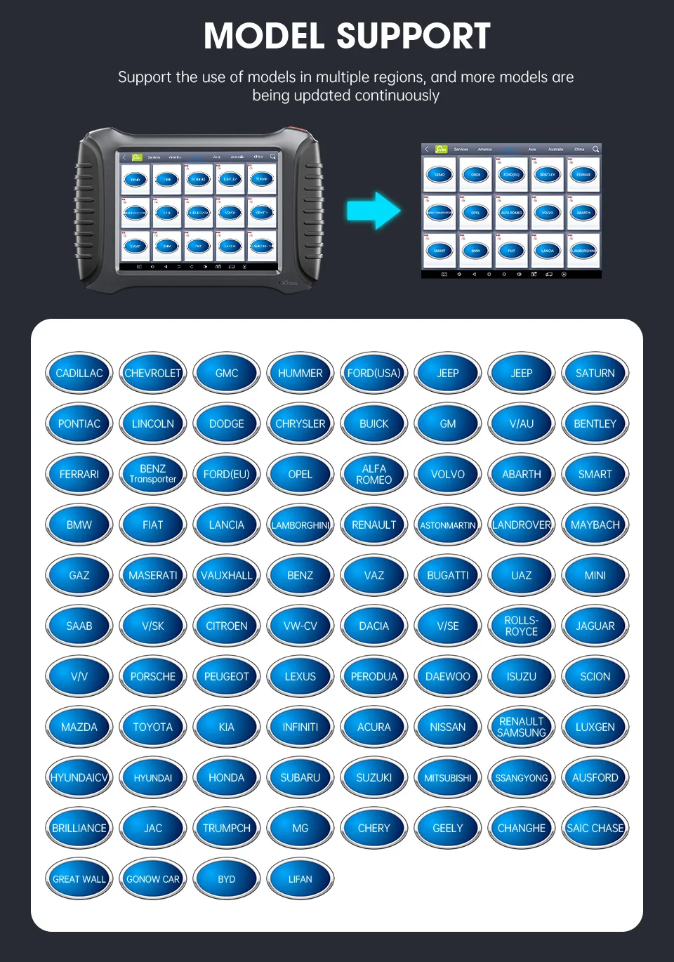 Программное обеспечение A80PRO имеет широкий спектр совместимости и может использоваться для диагностики автомобилей более 80 брендов в США, Европе и Азии. Более того, вы можете получить больше новых моделей автомобилей с помощью службы быстрого обновления программного обеспечения.Например:A80PRO поддерживает Benz, BMW, VW, Chevrolet, Ford (США), Cadillac, Dodge, Opel, Renault, Landrover, Gas, для ВАЗ, Citroen, Peugeot, Isuzu и др.