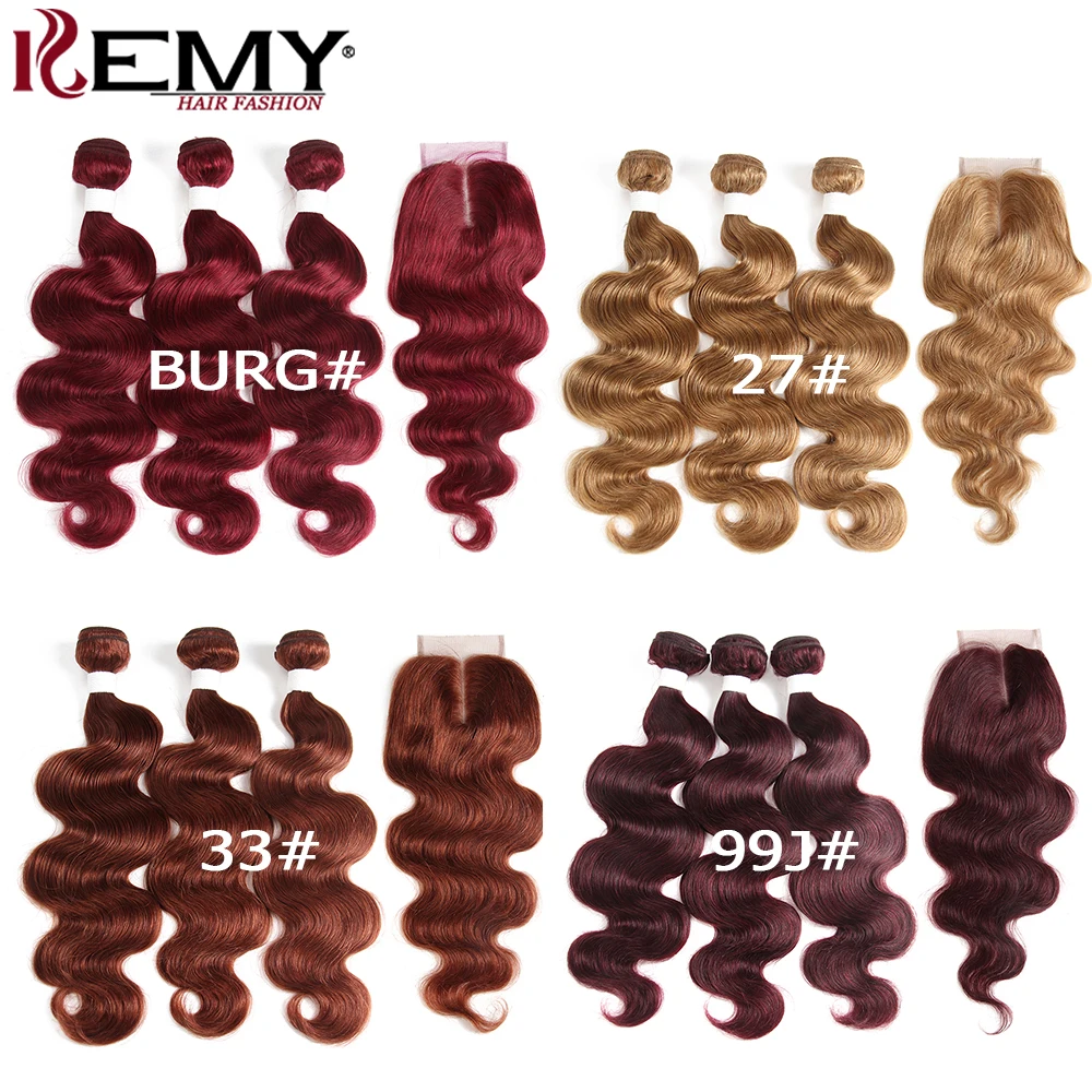 Коричневые человеческие волосы Auburn, пучки с застежкой, 4x4, волосы KEMY, 3 шт., бразильские волнистые искусственные пряди, волосы не Реми