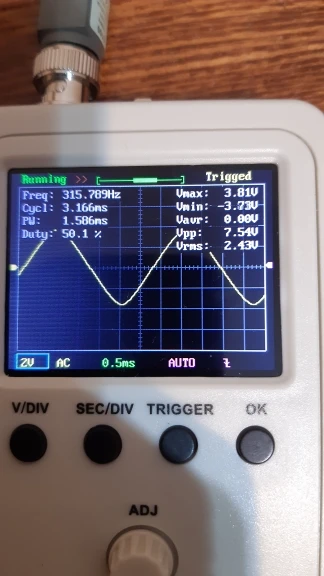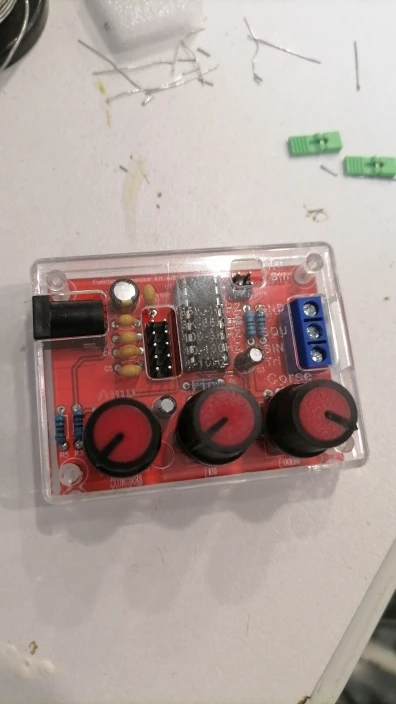 Прибыл очень хорошо упакован, все компоненты включены, легко построить, генератор работает, как и ожидалось. Синусоидальная кривая не такая чистая, как может быть (см. Фото), почти треугольная кривая, но подходит для тестовых целей.