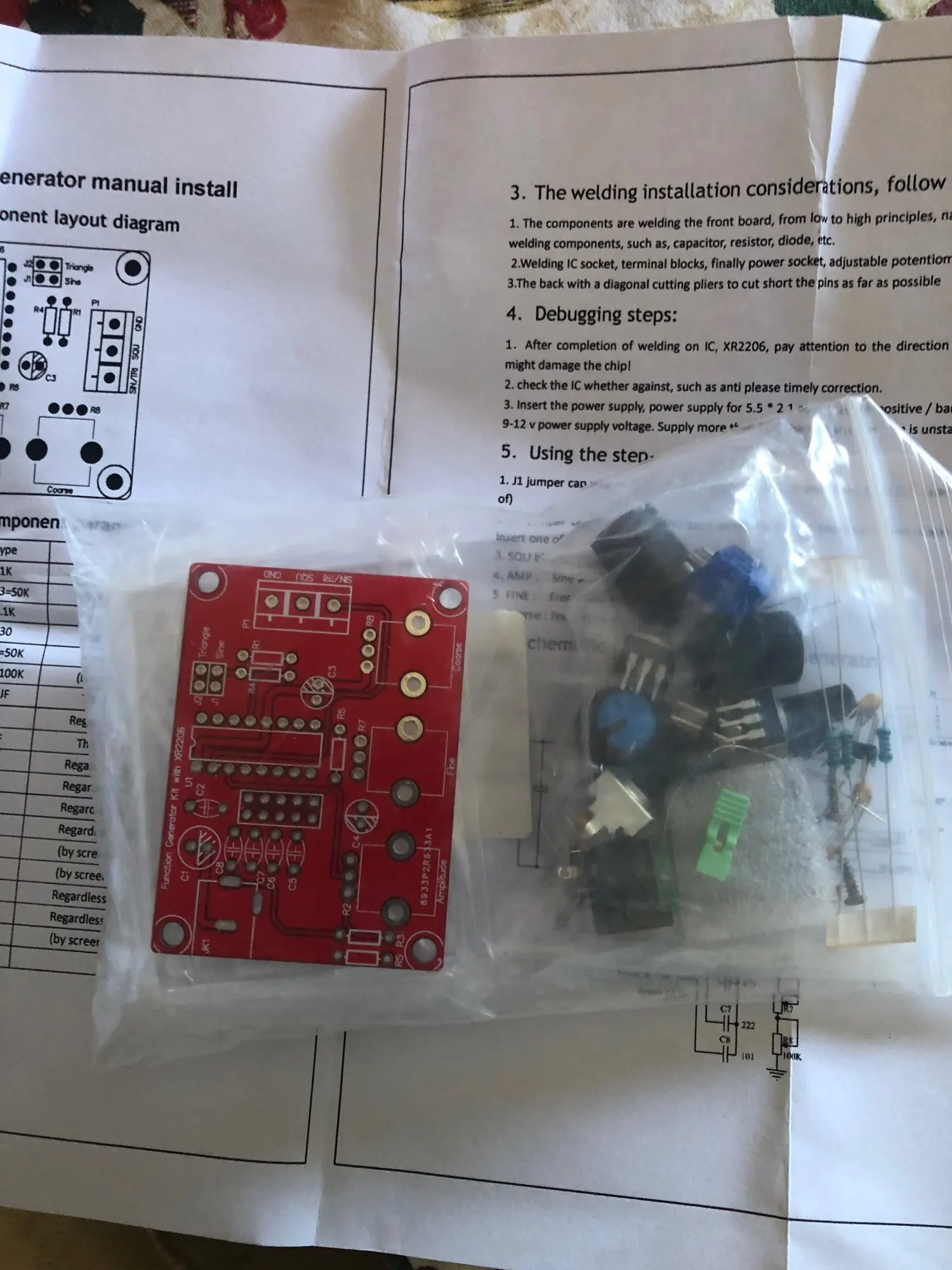 Пришло быстро. Заказал 28/09 пришло 4/10. Собрал за полчаса. Игрушка для детей. Синус относительный. Проверить прохождение сигнала пойдет, и только. Брал для настройки звуковых трактов. Блок питания лучше стабилизированый, иначе частота и уровень немного плавают. Выходное напряжение устраивает. Без видимых искажений около 4 вольт.
