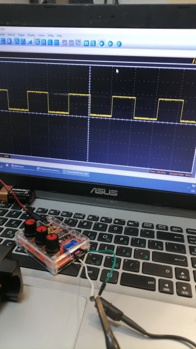 Корректная отправка. Сам прибор рабочий. Но как видно из осцилограмм идут искажения и завалы на предельные частотах в 1Мгц. Амплитуда регулируется только гармонического сигнала, цифровой идёт полным размахом в 10 вольт. Питание, по инструкции, от12 до 24. Но поставщик ограничивает 12 вольтами из за применения электролитов на 16 вольт.