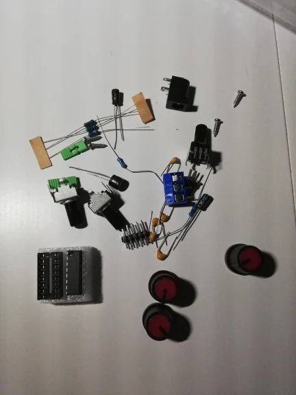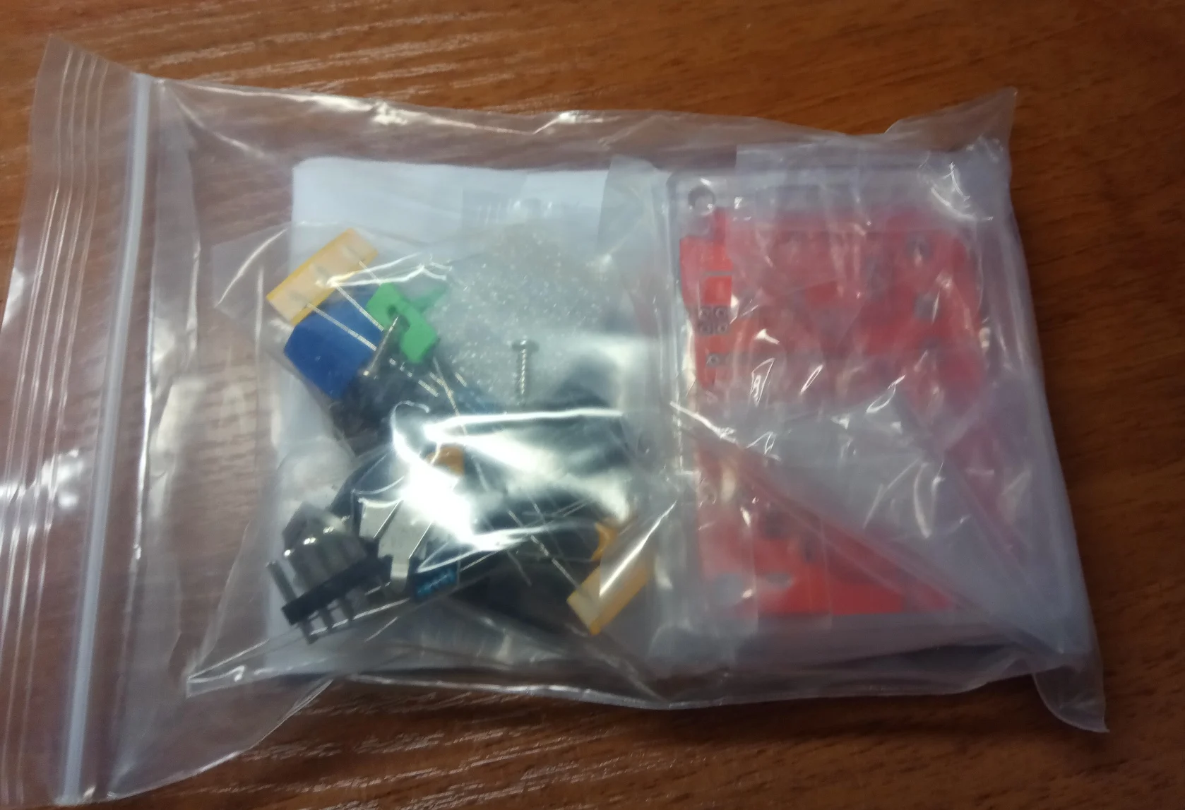 Еще не собрали его, но комплект закончен, поставляется со схемой и инструкциями по сборке, кнопки имеют красный колпачок вместо синего, но это нормально.