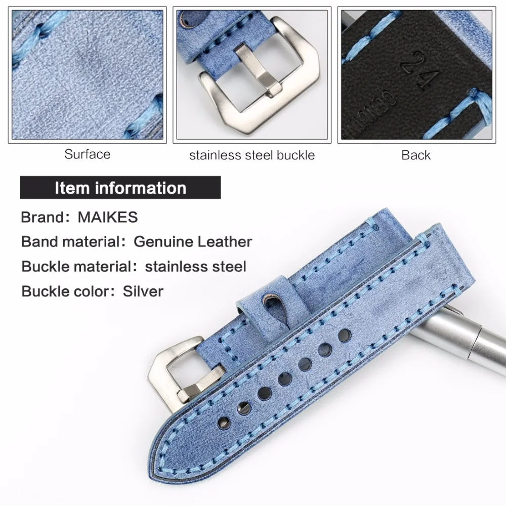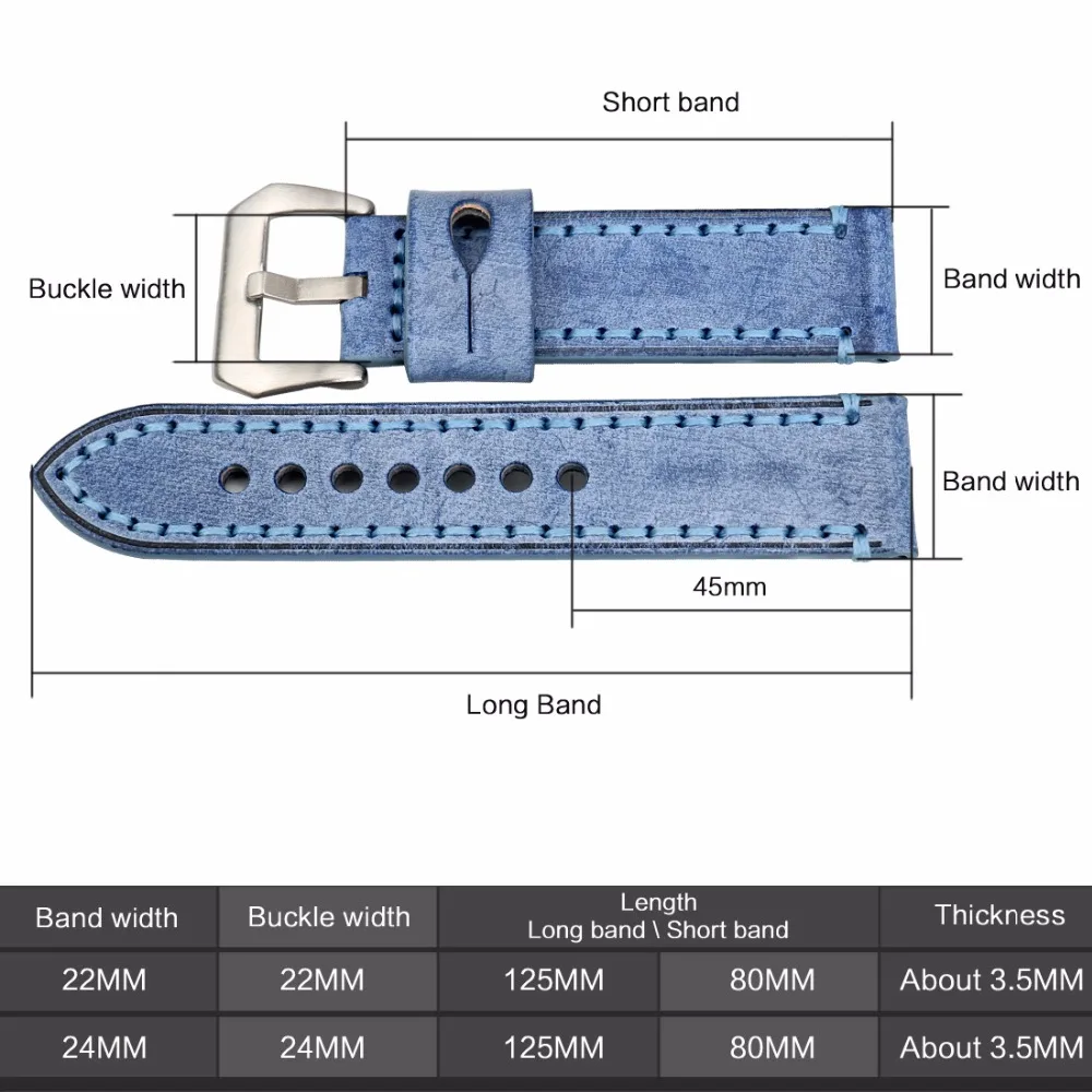 Ремешок кожаный в стиле ретро для наручных часов, синий браслет ручной работы для Samsung Huawei, аксессуары для часов, 22 мм 24 мм