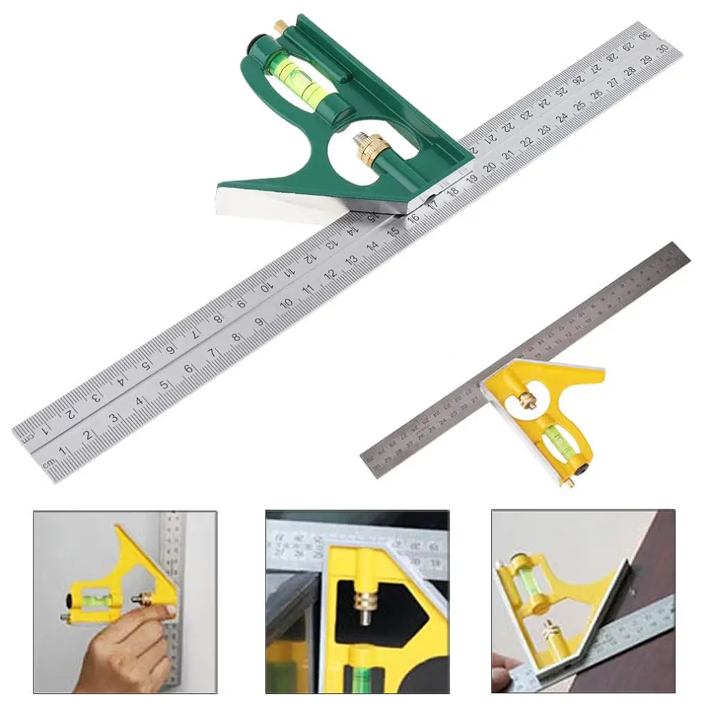 12 дюймов 300 мм Регулируемая Точная комбинация квадратная угловая линейка 45 90 градусов с пузырьковым уровнем многофункциональные измерительные инструменты