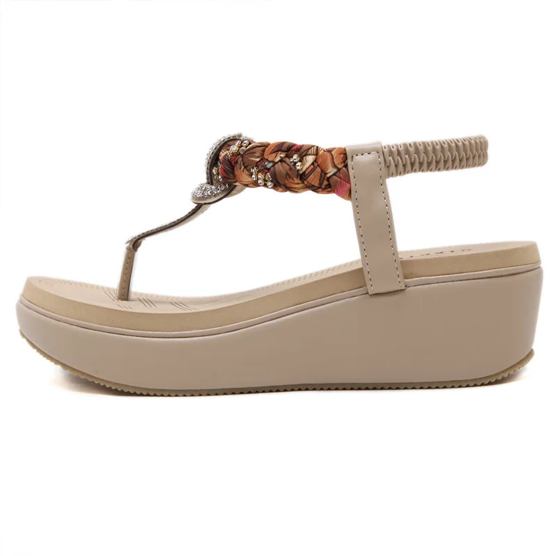 CEYANEAOмодные босоножки на платформе женские пляжные сандалии в богемном стиле женские сандалии с Т-образным ремешком со стразами Большие размеры BZT704
