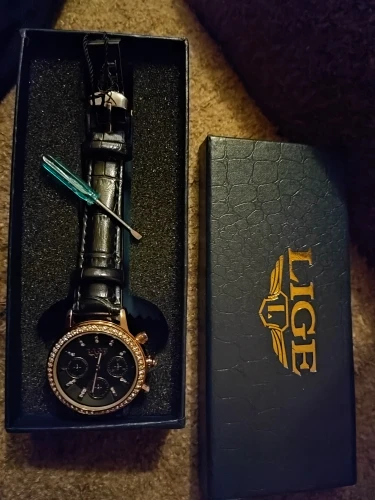 Часы LIGE женские с кожаным ремешком, брендовые люксовые золотистые наручные, с браслетом для девушек, с календарем