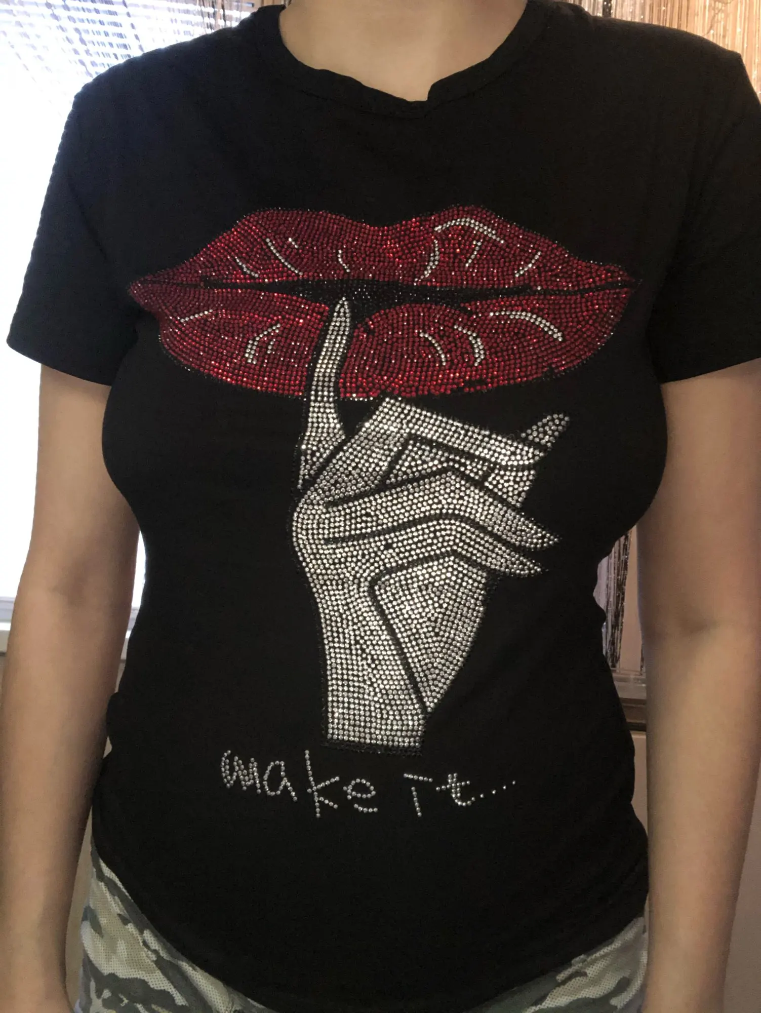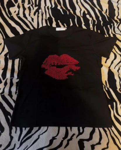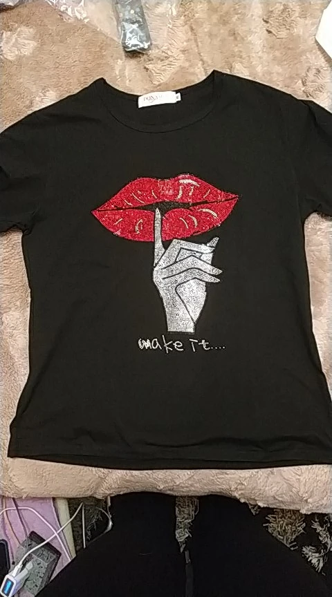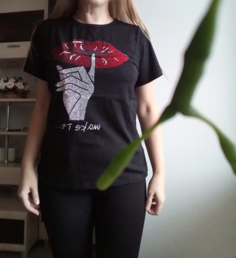 734р заказала Сразу две майки качество очень порадовало это не рисунок это стразы приклеенные с ними Кстати всё в порядке ни одного камушка не отвалилось рисунок очень крутой майка идеальная. размер М подошёл на на параметры обхват груди 88 талия 70 S была бы узкая очень