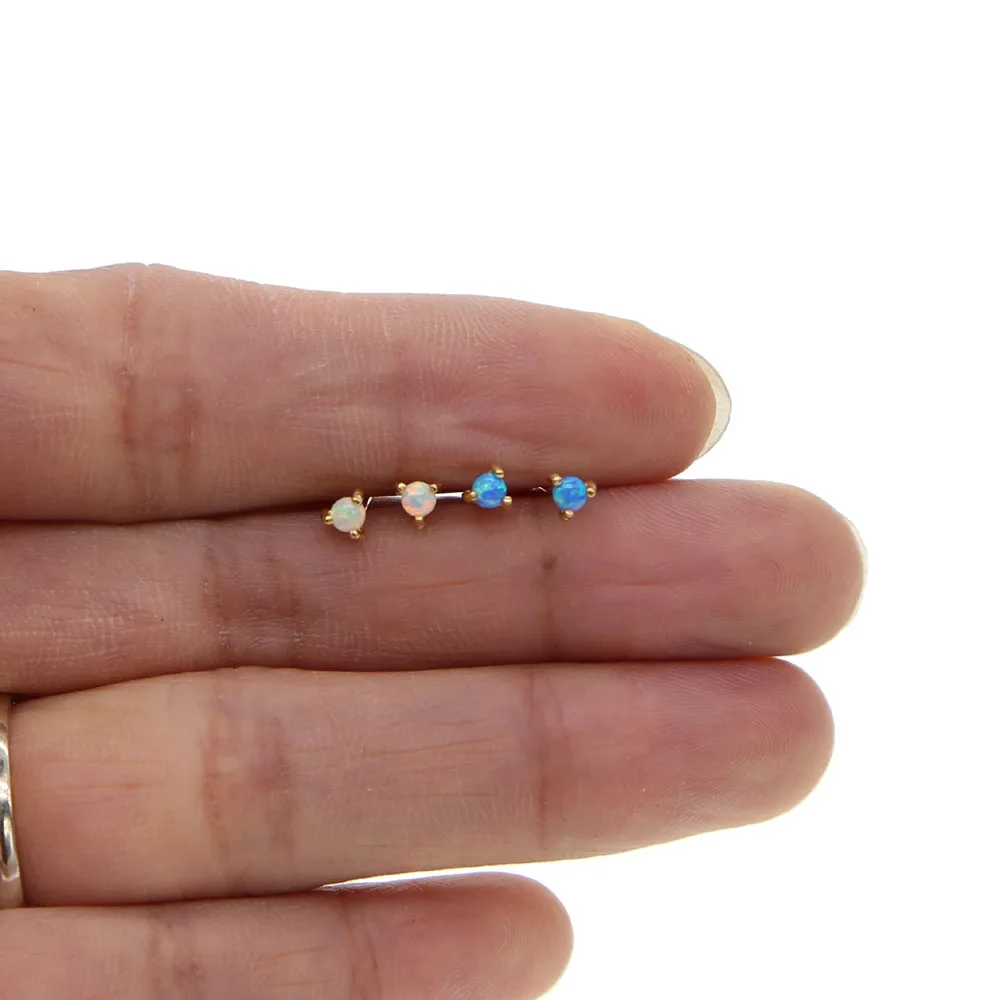 Минималистичные ювелирные изделия, крошечные, 2-3 мм, маленькие опаловые камни, белые, синие закрепки, милые, милые, мульти пирсинг, для девушек, серебро 925 пробы, серьги