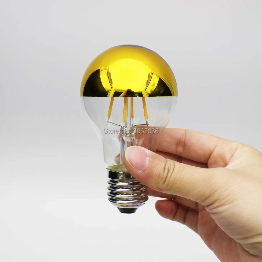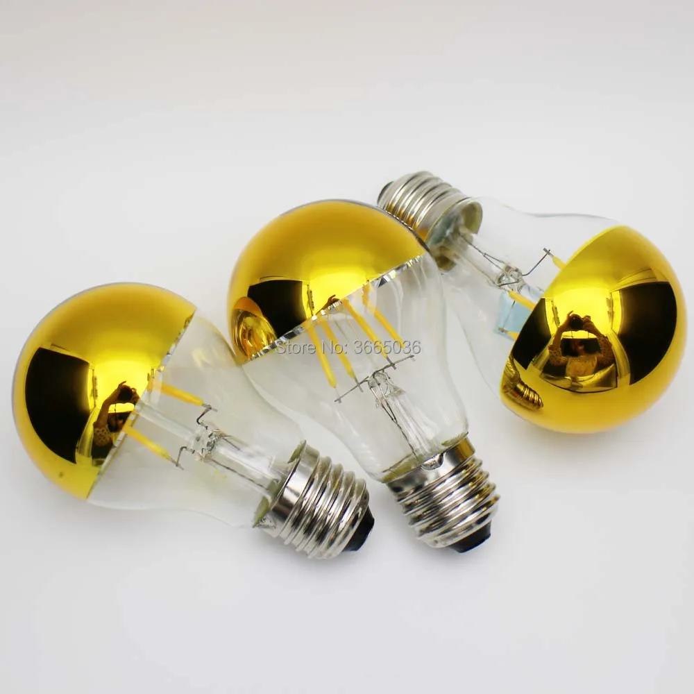 Светодиодные лампы накаливания A60 4 Вт, зеркальные полукруглые лампы золотого цвета 220 В 230 В, бестенесветильник ПА Эдисона, 10 шт., E26E27