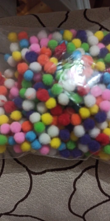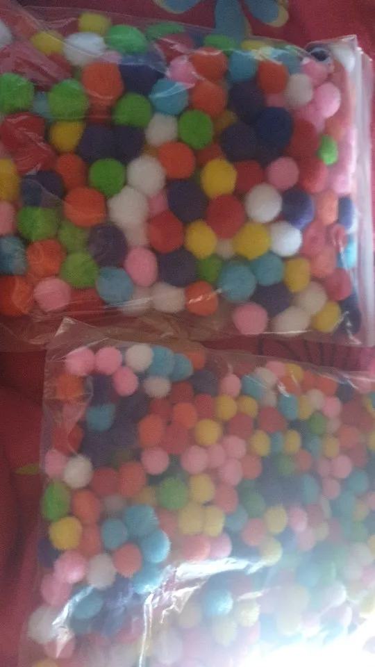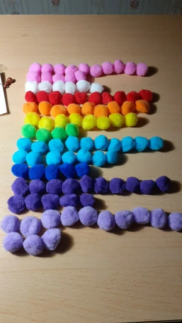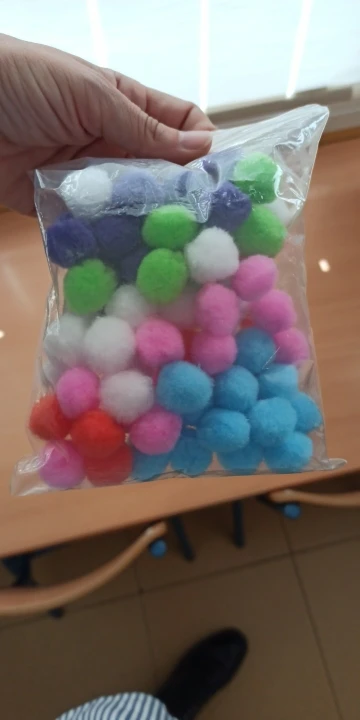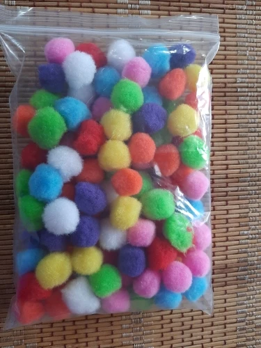 Спасибо. Помпончики взяла для поделок детям. Количество не считала,цвета яркие.
