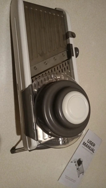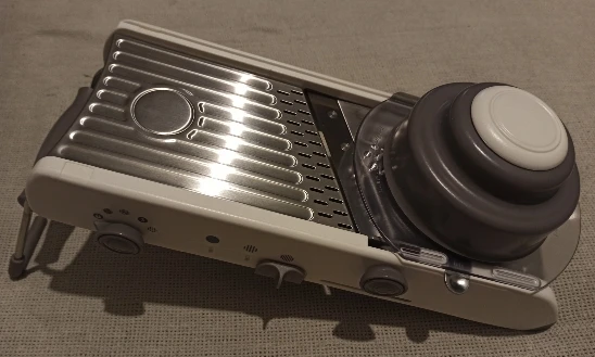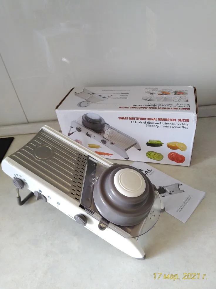 Отличный мандолин, очень полный и служит для изготовления многих видов порезов с различной шириной. Я уже попробовал его, и он работает идеально. Настоятельно рекомендуем!
