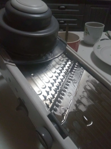 Доставка быстрая. Сама терка хорошая, сделана качественно, лезвия острые мама была рада такому подарку