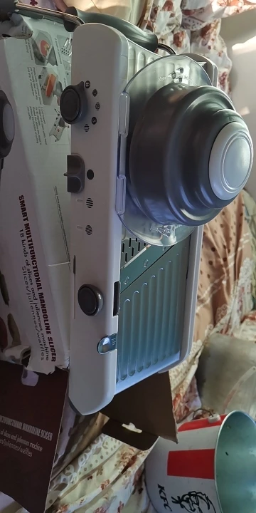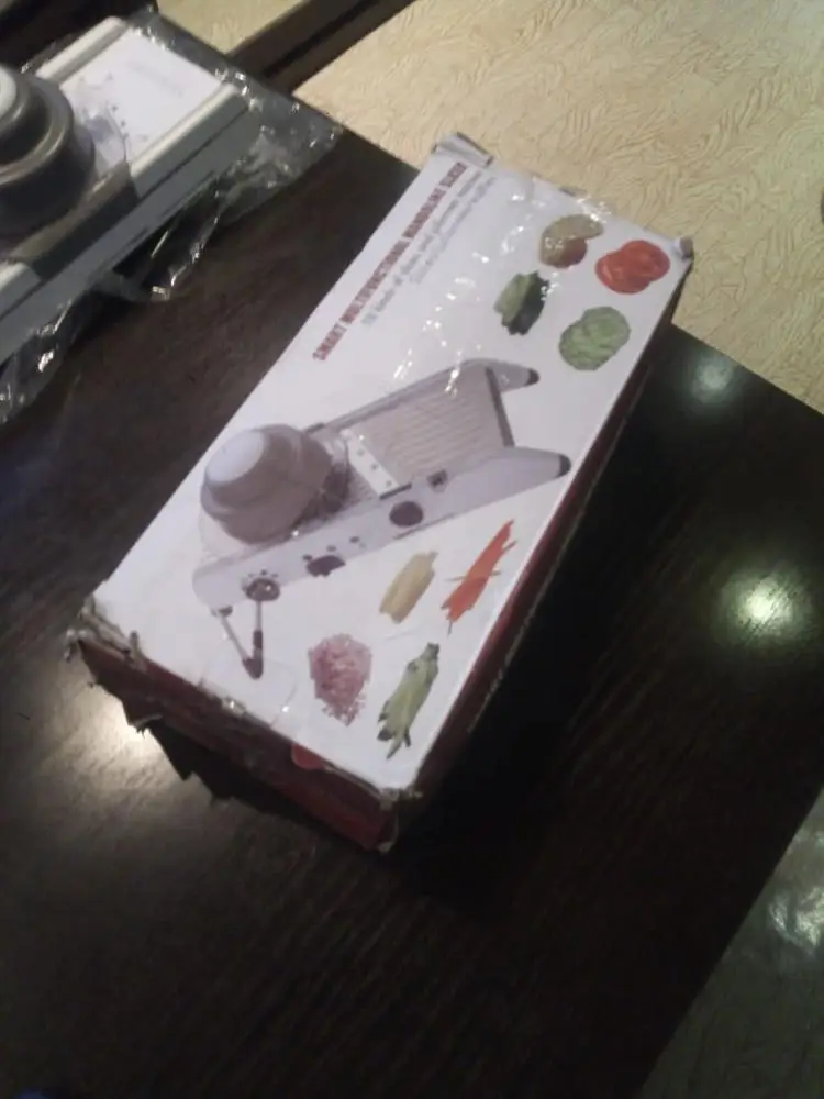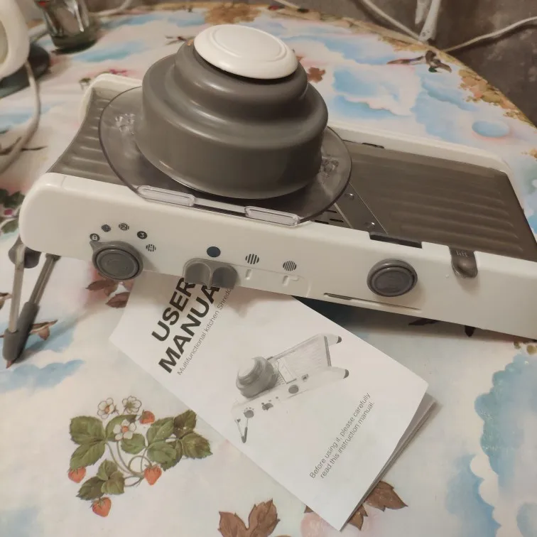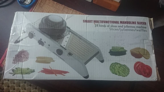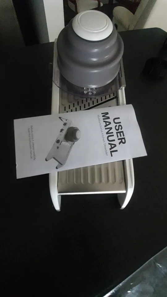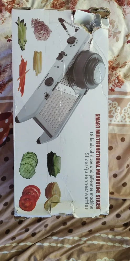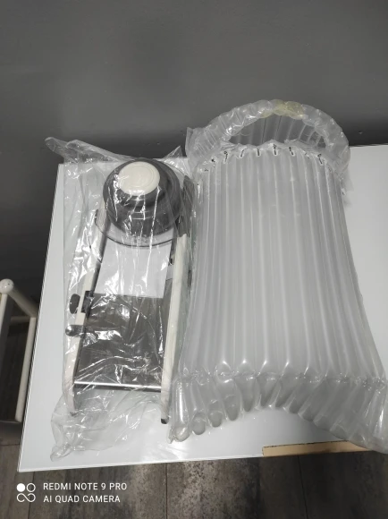 Я получил товар в идеальном состоянии и в расчетный срок. Этот овощерезка выглядит крепким и больше, чем я думал. Он идеален, потому что он интегрирован, и вам не нужно добавлять и удалять лезвия, даже ручной, чтобы зафиксировать еду и не резать во время использования, он поставляется вместе с кронштейном, который фиксирует его и делает его гораздо более безопасным. Я почти не использовал его, только важно проверить, что все было правильно, и я был удивлен простотой использования и заточки, что это так. Даже резка решетки, которая кажется самой сложной, управляется за очень короткое время. Покупка и Продавец Рекомендуем на 100%.