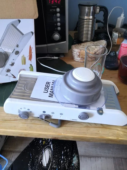Хорошая мандолина, хорошо работает. Он был доставлен очень быстро компанией доставки в моем доме.