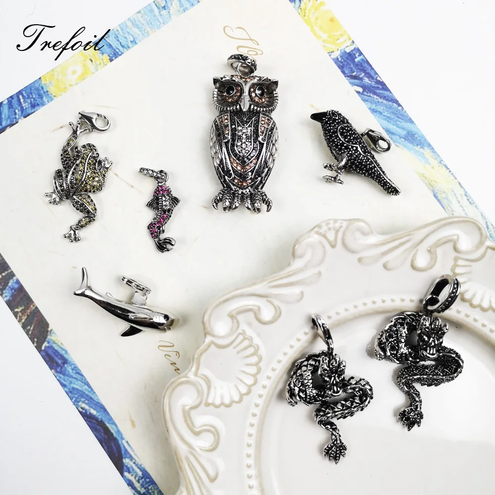 Ожерелье в стиле панк для женщин и мужчин, модное Ювелирное Украшение из черного дракона кои, рыбы, Ворон, лягушка, подвеска в виде акулы, подарок из стерлингового серебра 925 пробы