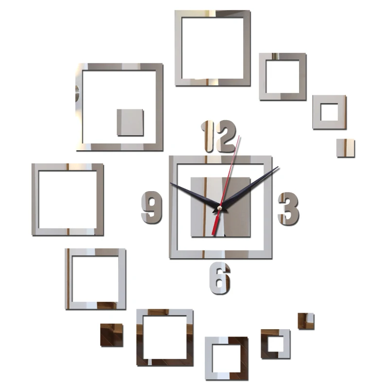 Акриловые 3d настенные часы, 17 квадратов, кварцевые зеркальные час...