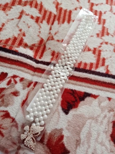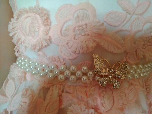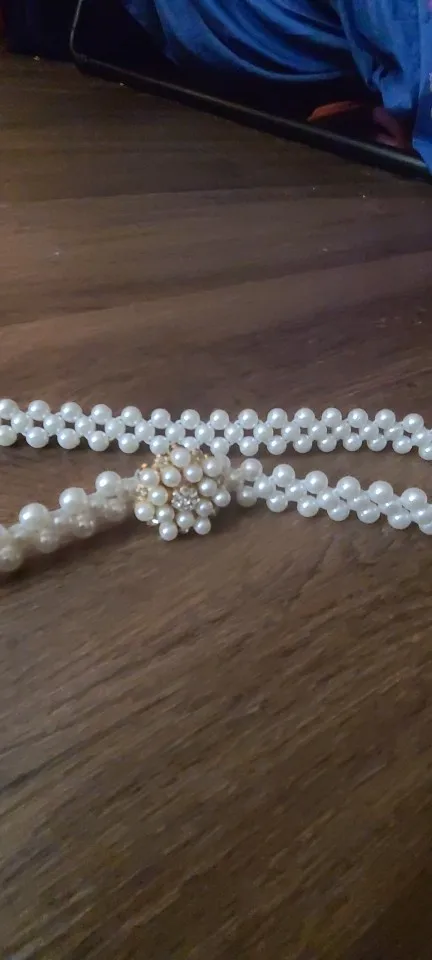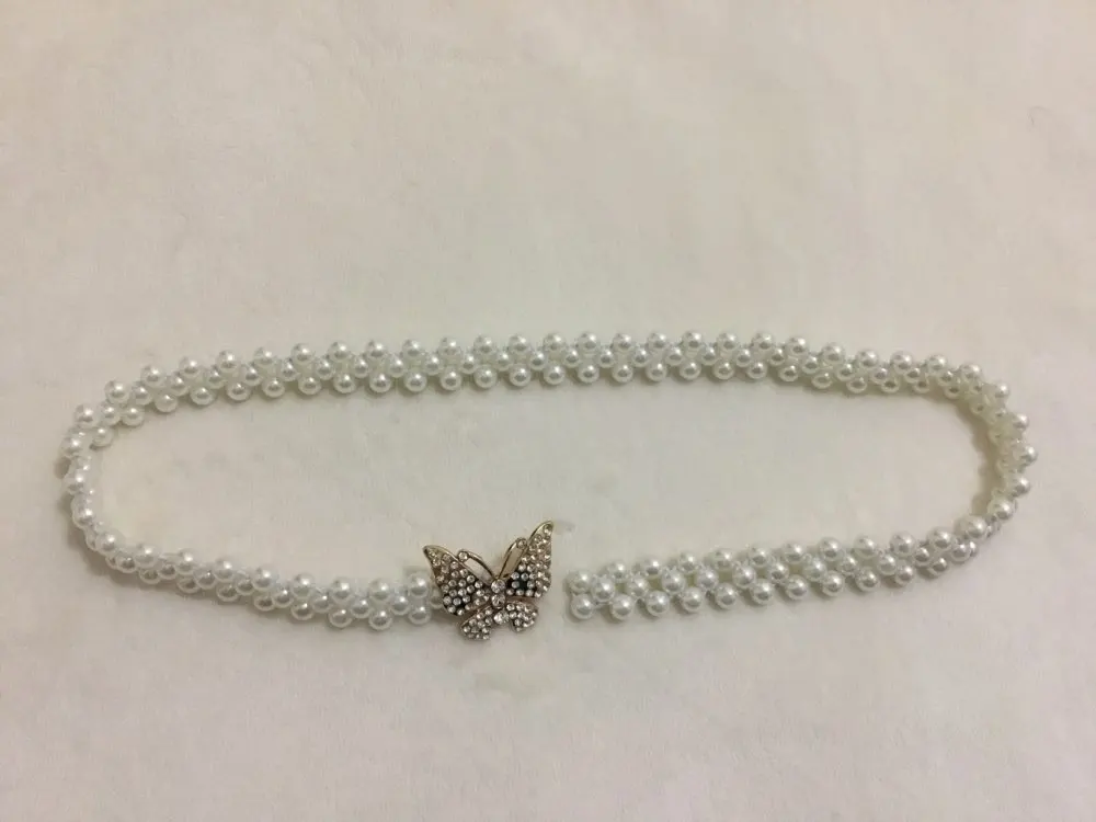Ремень женский, с жемчужной пряжкой и кристаллами