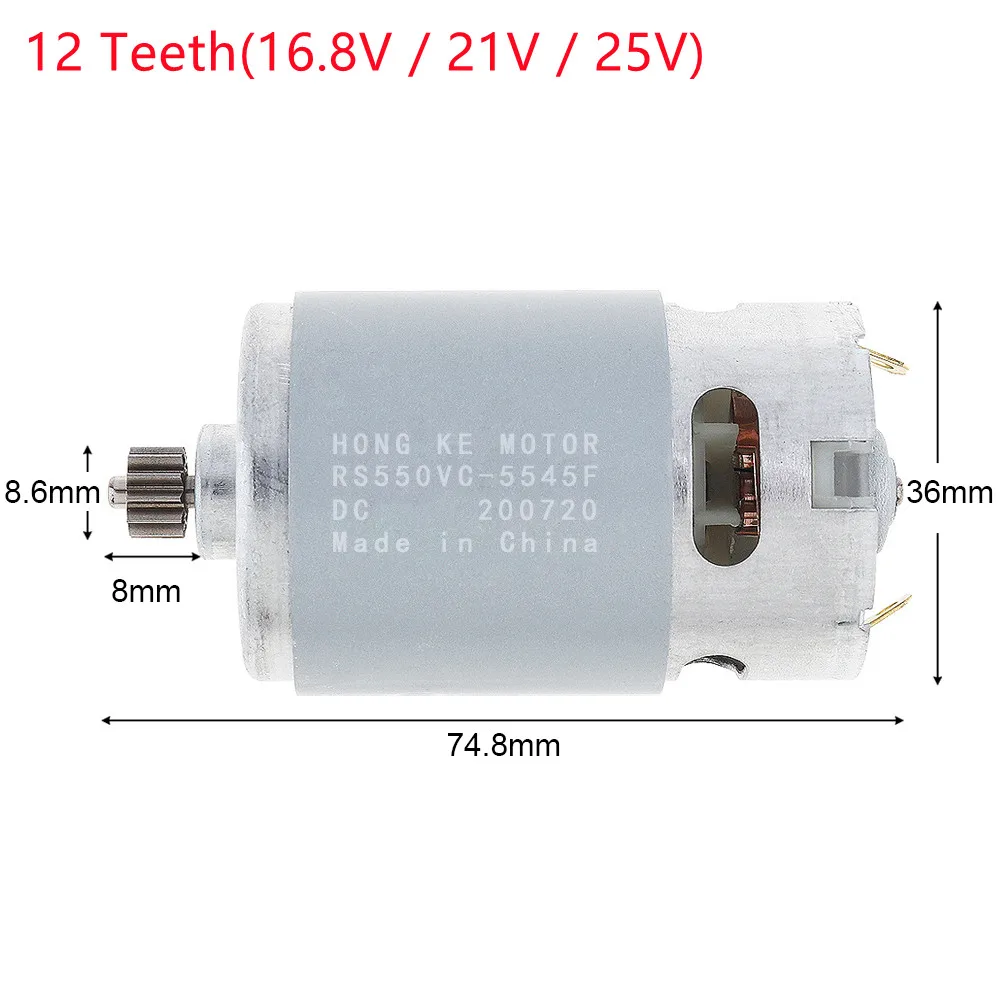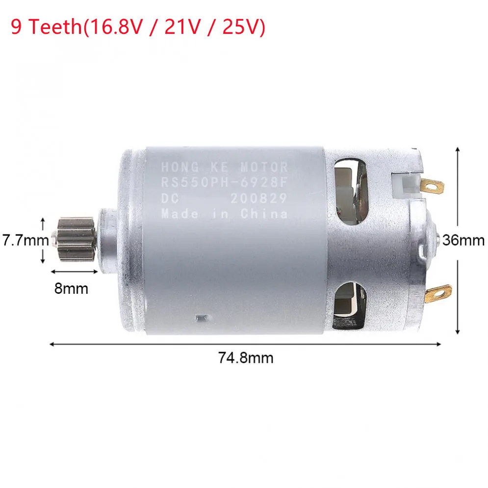 Электродвигатель RS550 19500, 16,8 в, 21 в, 25 в, оборотов в минуту, с 9 зубьями, с одной скоростью, с высоким крутящим моментом, для электродрелишуруповерта