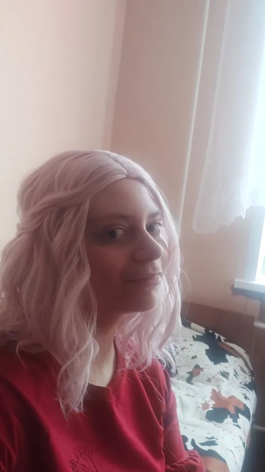 Парик приехал в Сочи быстро, недели за две. Мягкий, шелковистый, легко расчесывается и не путается, а главеое - густой! Цвет как на картинке - бледно-розовый. Это не каре и не волосы по плечи, передние пряди длинее задних, что лично бля меня еще лучше. В подарок шла сетка, две резиночки с мики маусом и временные тату с розами, очень приятно. Я безумно рада :} С продавцом не общалась, но очень его рекомендую, волосы огонь! ♡