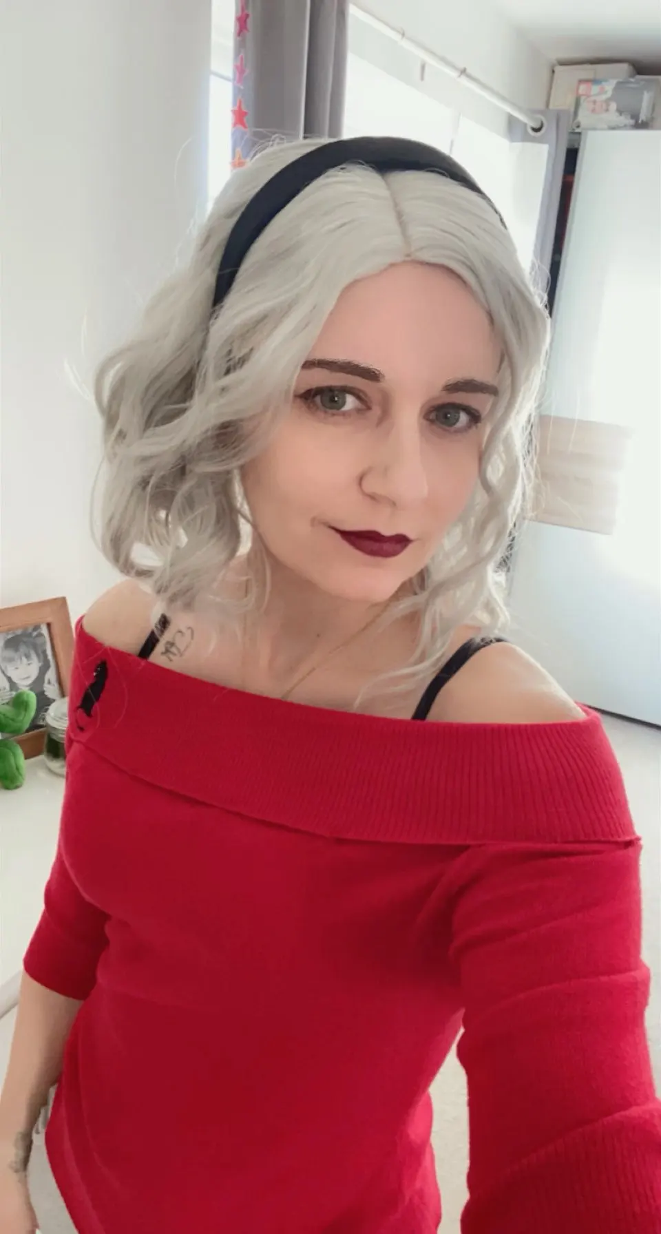 lo pedí el 22 de agosto y llegó el 7 de septiembre, igual a la imagen, me servirá para los siguientes Cosplays como el de Sabrina spellman por ejemplo, es suave, trae una redecilla de regalo y un tattoo de pega me gusta los detallitos