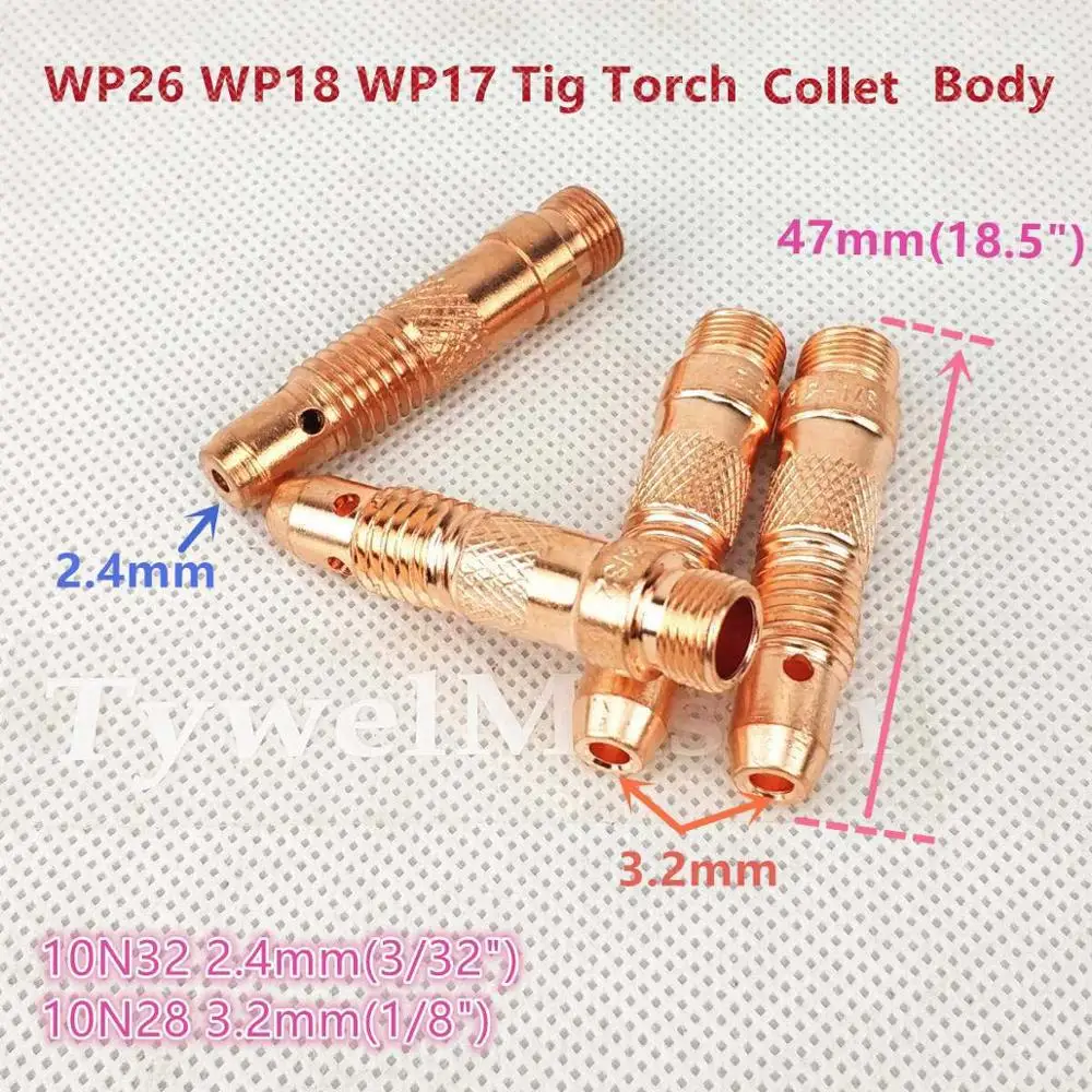 Цанговый корпус 10N32 2,4 мм (3/32 ") 10N28 3,2 мм (1/8") 2шт/ПК для WP17 WP18 WP26 Tig фонарь