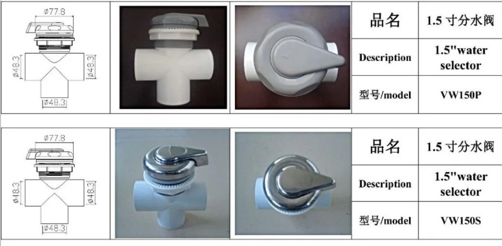 1,5 Дюймовый пластиковый переключатель для спа-воды, переключатель для воды и горячей ванны