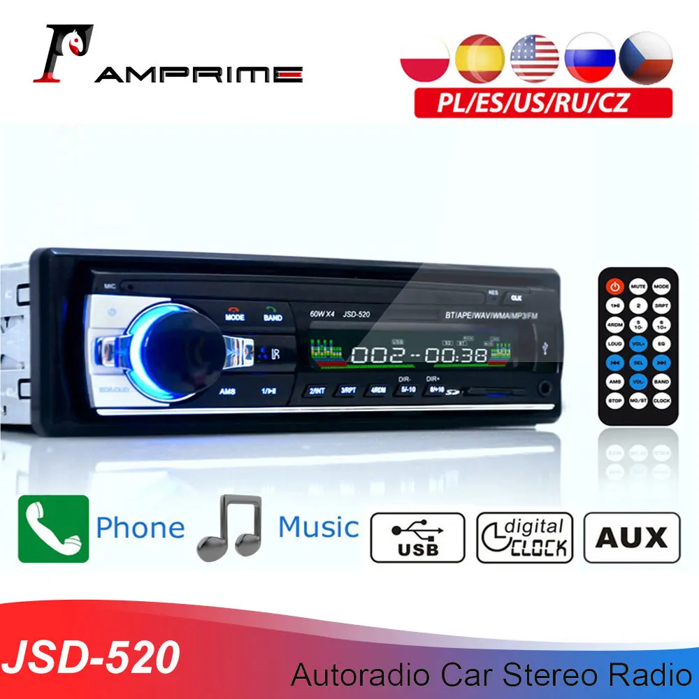 Авторадио AMPrime JSD-520, стерео магнитола для автомобиля с Bluetooth, FM-радио, Aux выходом, SD-картой, USB, автомагнитола 1 din, мультимедийный плеер с MP3, 12 В