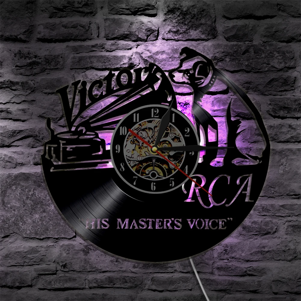 Настенные часы RCA Victor Dog с музыкальным голосом его мастера, настенные часы Victor Nipper Dog с винтажной виниловой пластиной, часы Rock n Roll, музыкальный подарок