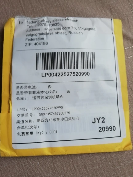 Страна: IN Доставка: Cainiao Super Economy for Special Goods 24.11.2020