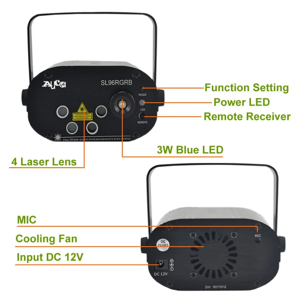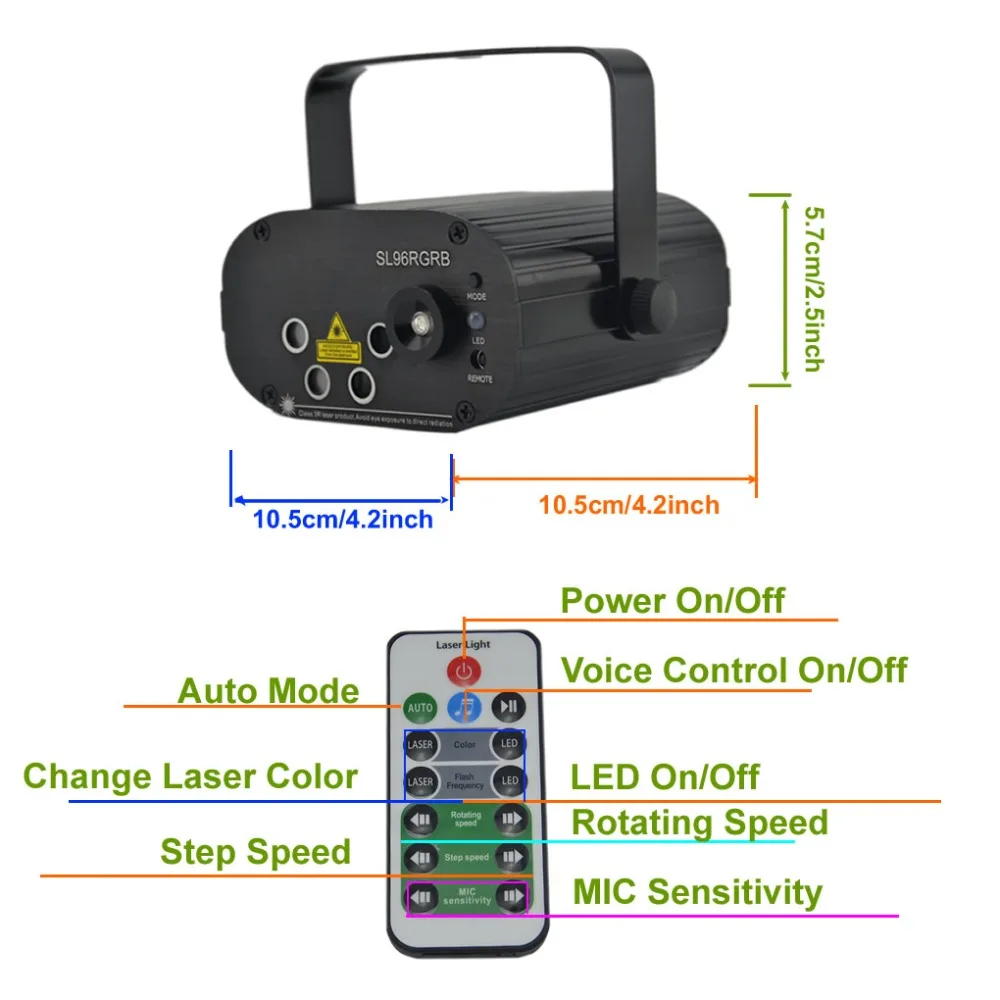Лазерные большие узоры и светодиодная фоновая лампа смешанные великолепные эффекты.