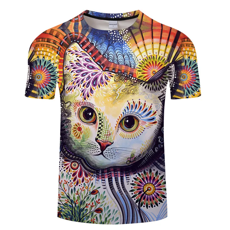Мода 2020 новая крутая футболка для мужчинженщин Harajuku Волк 3d футболка принт Два кота короткий рукав летние топы футболки Мужская 5XL