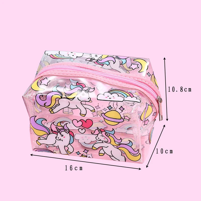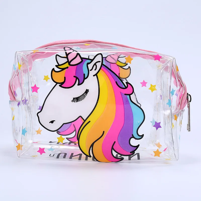 Новинка, прозрачная косметичка из ПВХ под девятнадцать, органайзер с единорогом, косметичка с единорогом, сумка для туалетных принадлежностей с единорогом