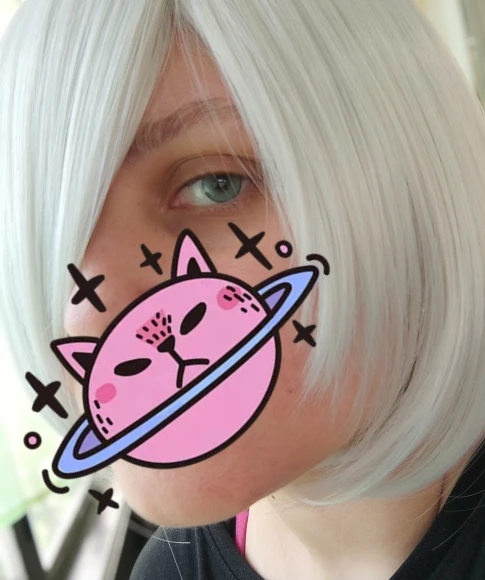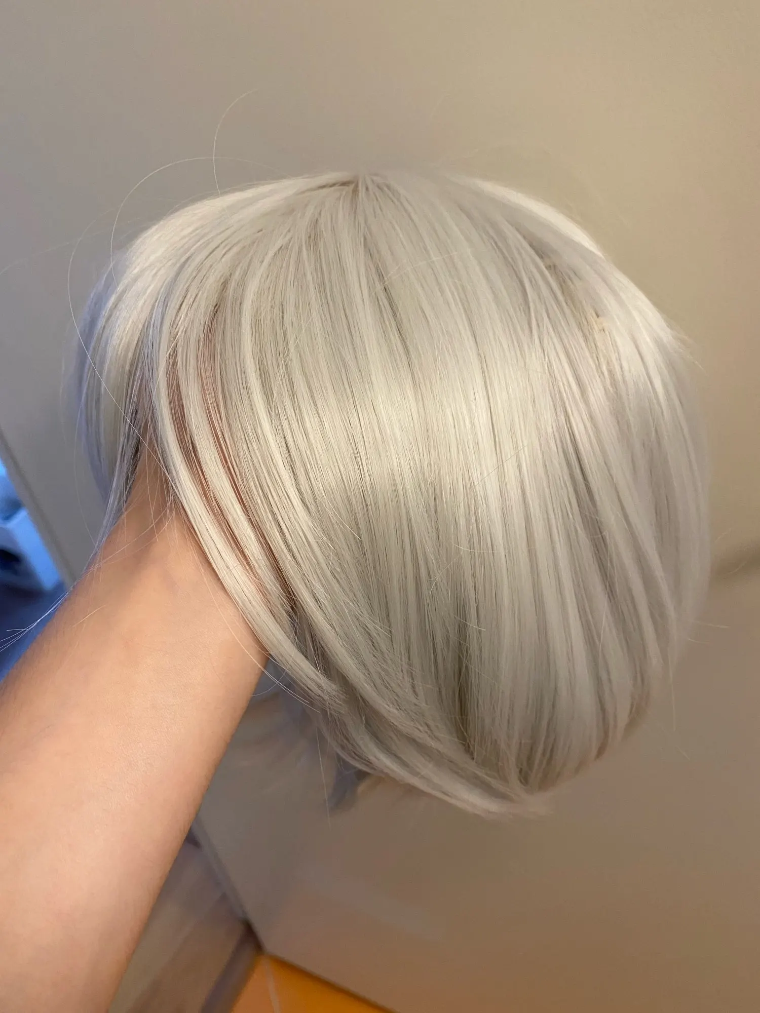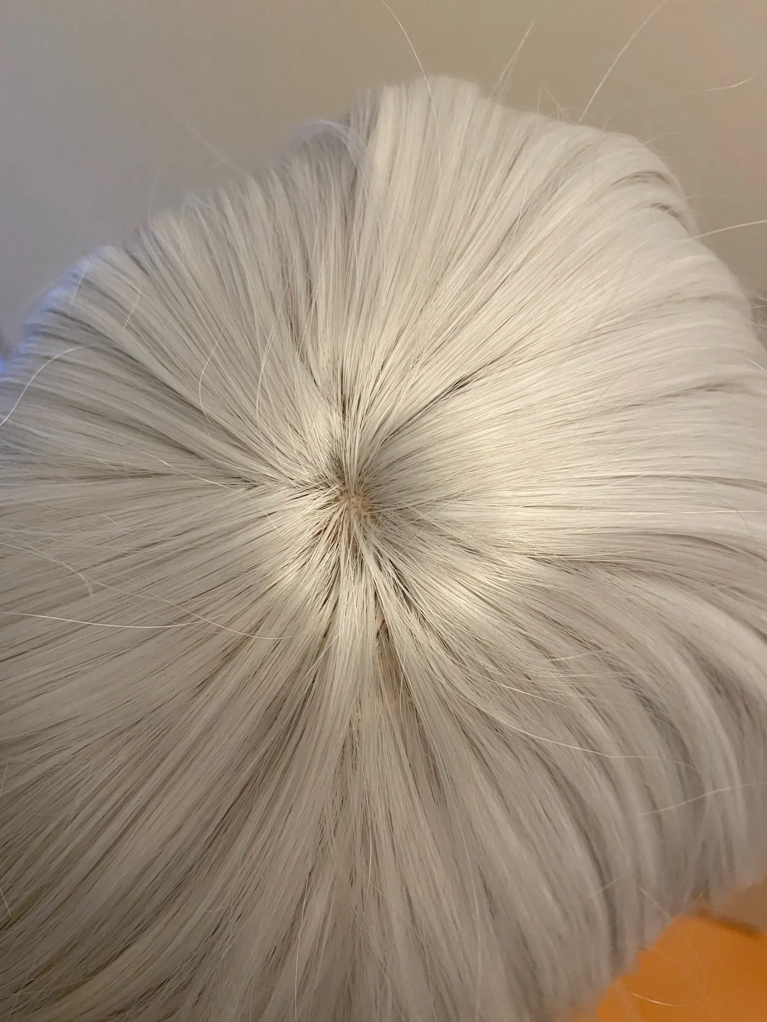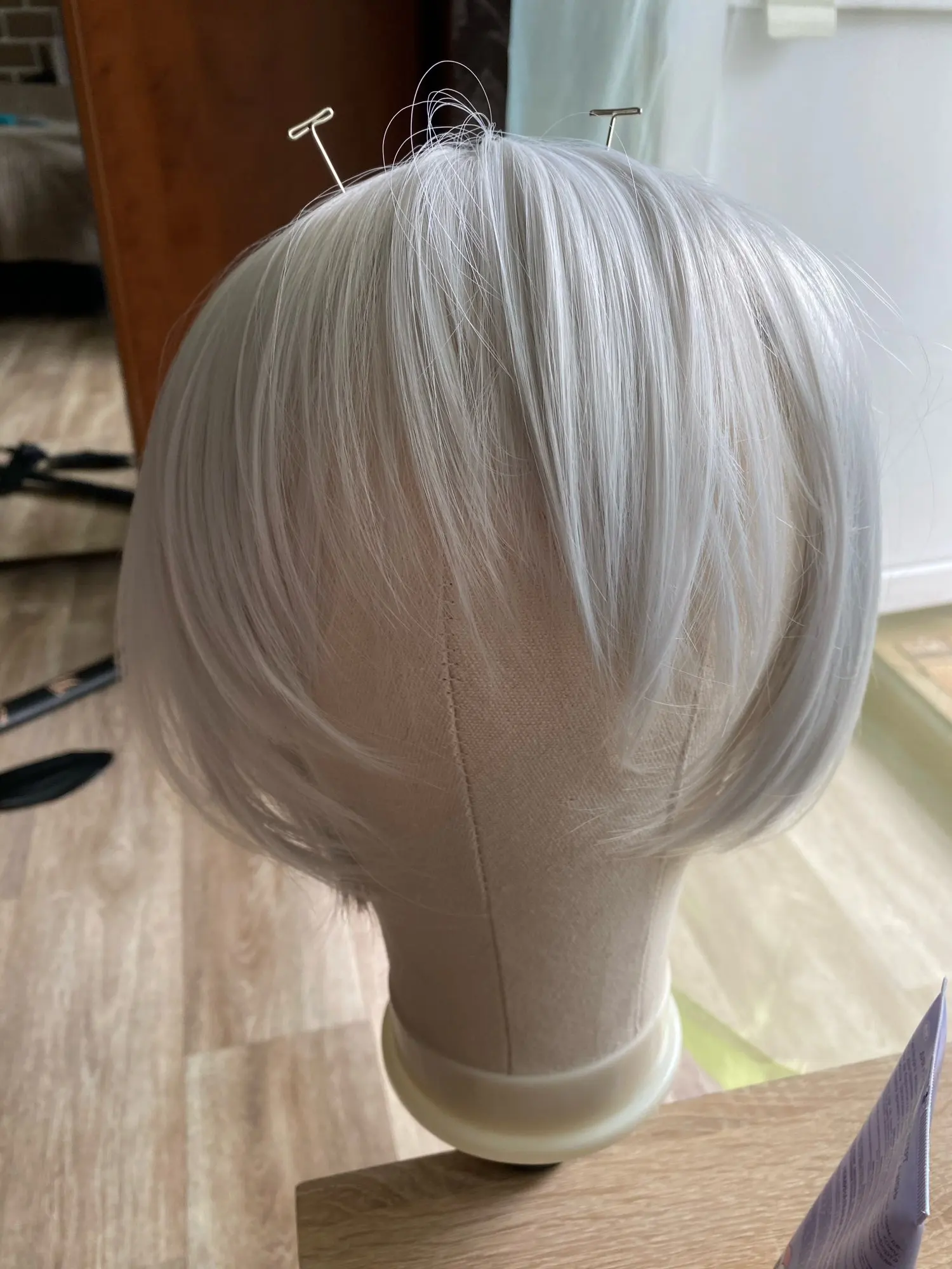 Парик очень белый, но кажется немного коротким. Не обращайте внимания на оголовье.