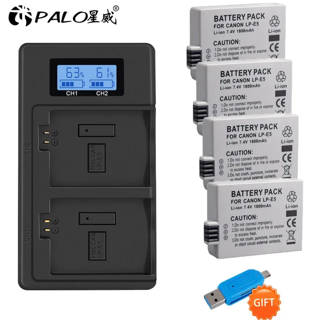 Аккумулятор для фотоаппарата LP-E5 LPE5 LP E5 + зарядное устройство с двумя USB-портами для Canon EOS 1000D 500D 450D Kiss X3 X2 F EOS Rebel XS XSi Rebel T1i.