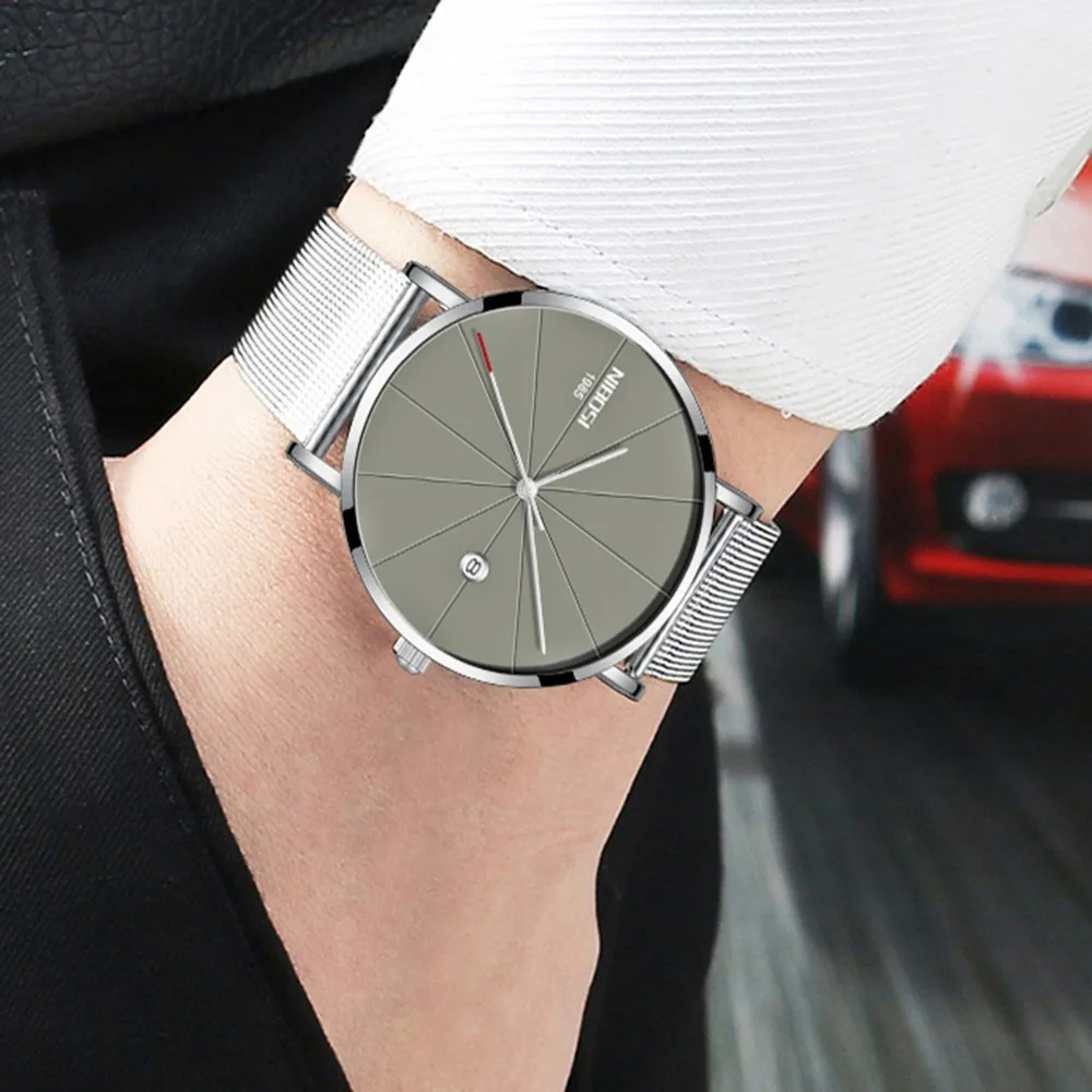 Повседневные часы NIBOSI, мужские Стальные кварцевые ультратонкие ч...