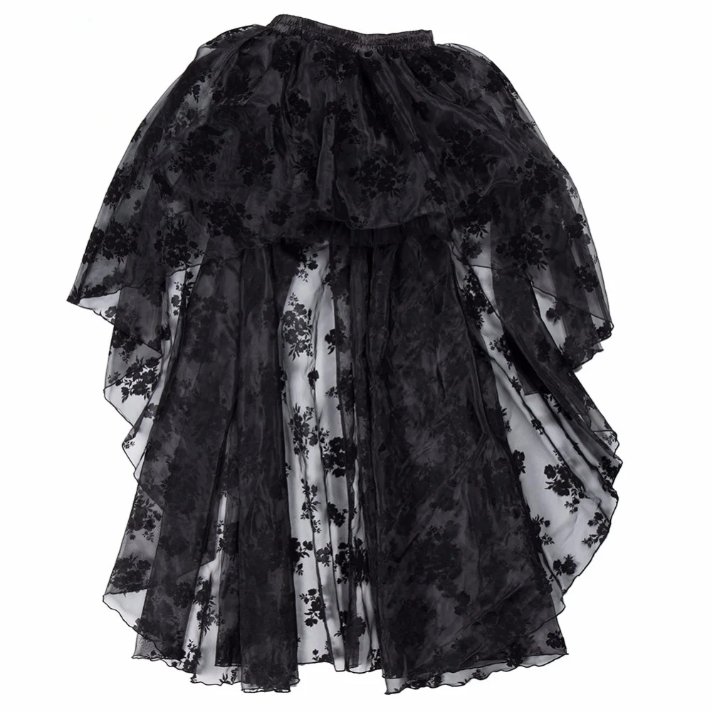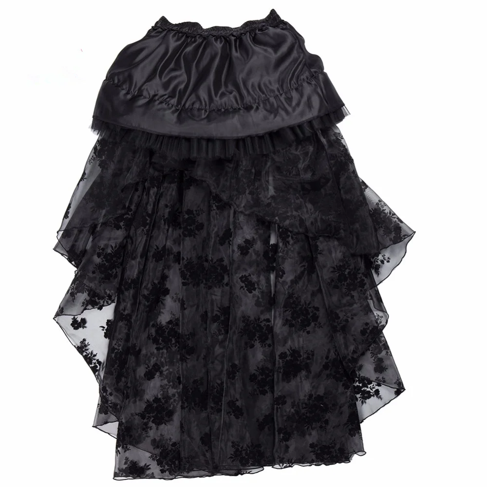 Женская кружевная юбка, винтажная юбка в пол в стиле стимпанк, сексуальная черная кружевная юбка с цветочным рисунком для свадебной вечеринки