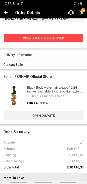 Волосы сильно пролились, и когда я писала продавцу, они оставили меня в поле зрения и никогда не отвечали.