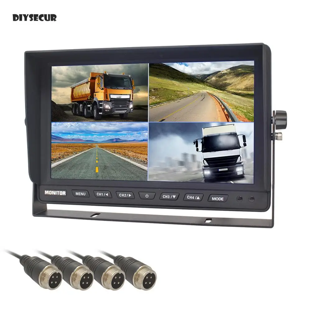 DIYSECUR 4CH 4PIN DC12V-24V 10-дюймовый 4 split Quad LCD экран дисплей заднего вида Автомобильный монитор для камеры заднего вида грузовика автобуса