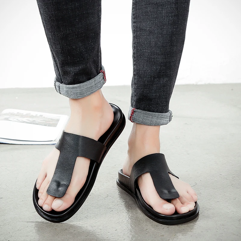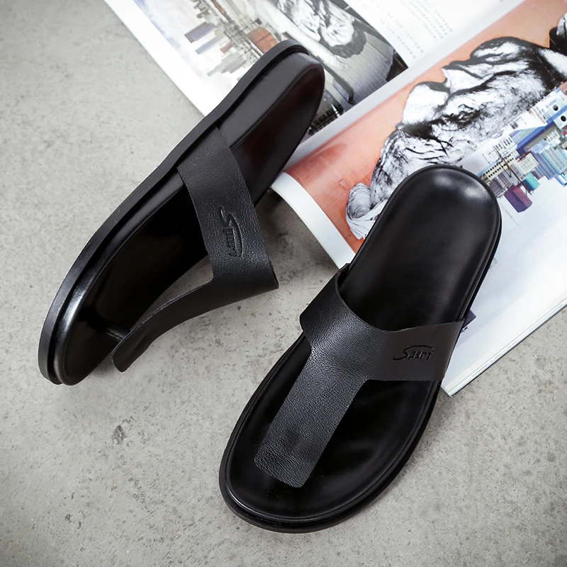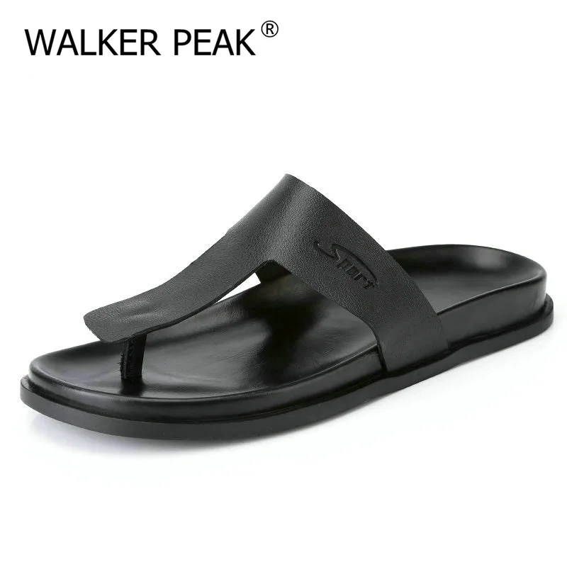 Мужские Пляжные шлепанцы, коричневые Шлепанцы из натуральной кожи, летняя обувь, большие размеры 38-44, 2018