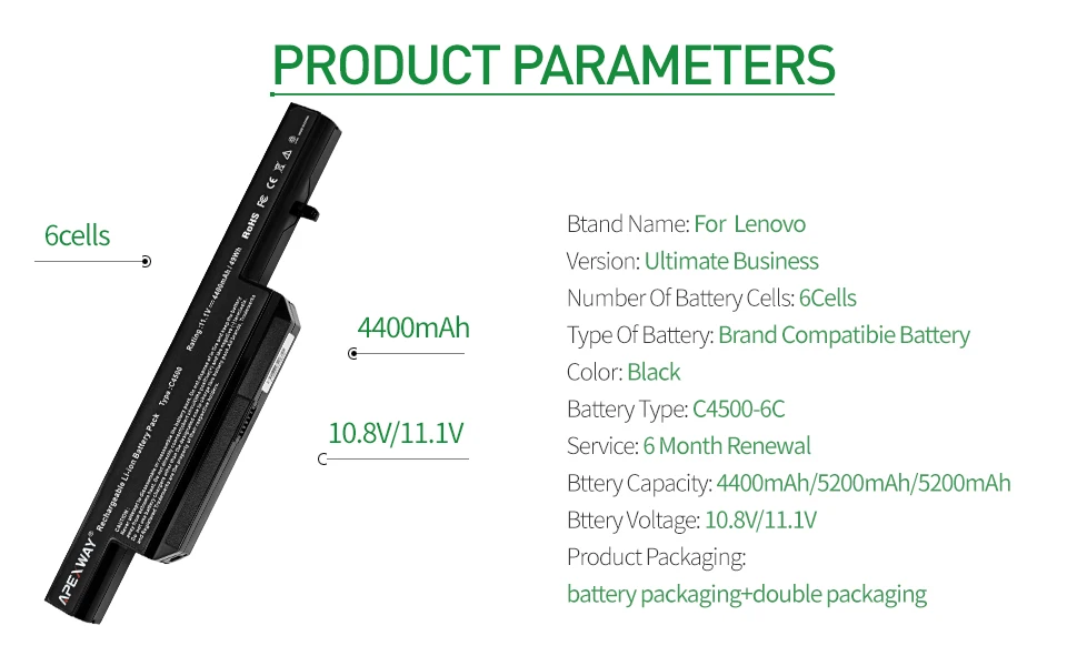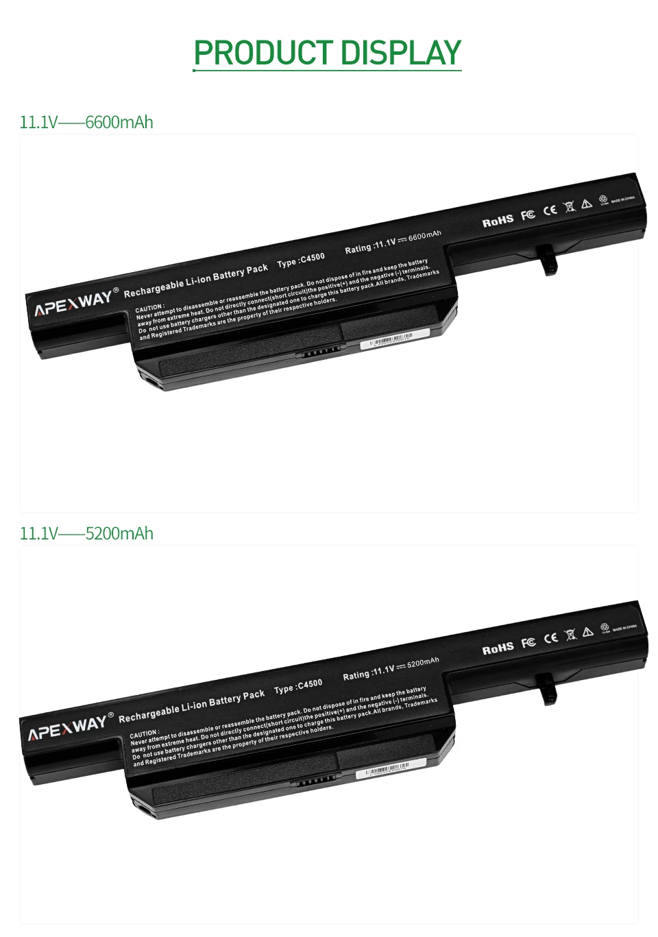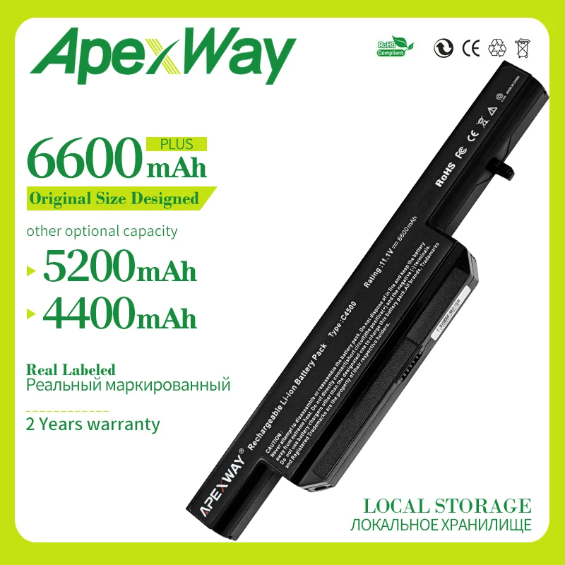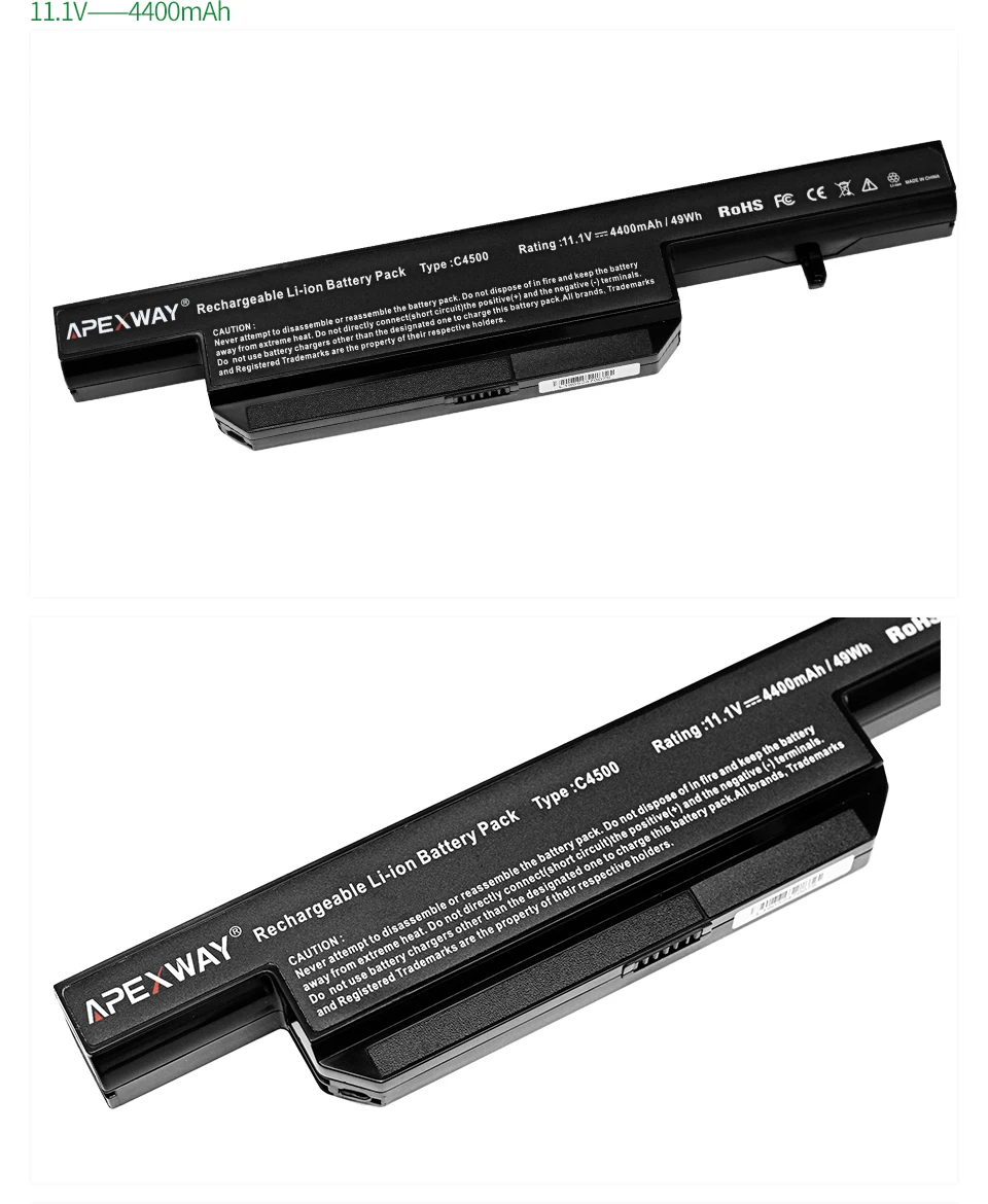 Аккумулятор Apexway 11,1 В, 6 ячеек для Clevo, C4500BAT 6, B4100M, C4500, C4500BAT6, B4105, B5100M, B5130M, W150, W240C, W240HU, W250H