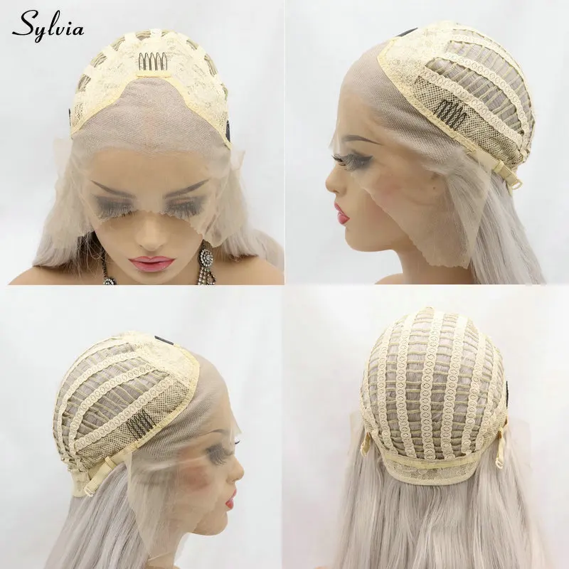 Sylvia серебристо-серый парик естественная волна длинные волосы термостойкие синтетические кружева передние парики для женщин пепельный блонд/платина средняя часть