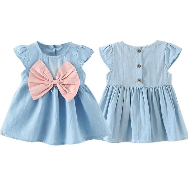 2018 г., новые летние платья для маленьких девочек, красивый дизайн с большим бантом, мини-мода и элегантный стиль, детская одежда, короткое платье.