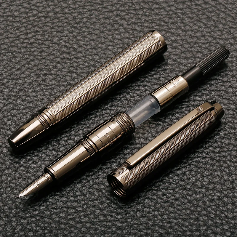 Роскошная перьевая ручка с гравировкой темно-серого цвета 0,5 мм, Тонкое Перо, металлические ручки для письма, деловые офисные подарки, школьные принадлежностиПосылка: 1 ручка, 1 оригинальная коробка