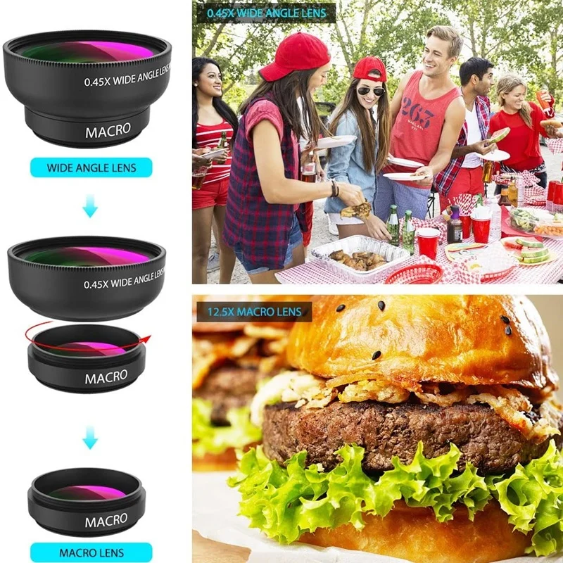 Универсальный объектив для телефона Tongdaytech 0,45x, суперширокоугольный 12,5x макрообъектив, HD объектив камеры для iPhone 12 11 7 8 X XS Huawei Xiaomi